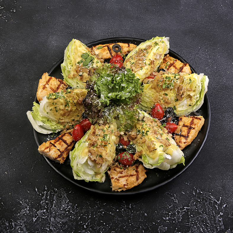 کاهو پیچ ,فیله مرغ طعم دار ,گردو ,جعفری ,سس مخصوص